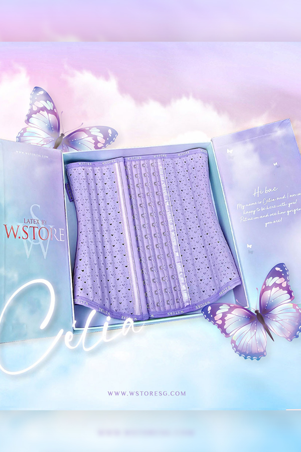 - Célia tím pastel với thiết kế lỗ thoáng khí hình TRÁI TIM cực đáng yêu, đây là dòng đai định hình eo được nâng cấp lên từ latex Gymie (25 xương, có lỗ thoáng khí, 3 nấc cài).